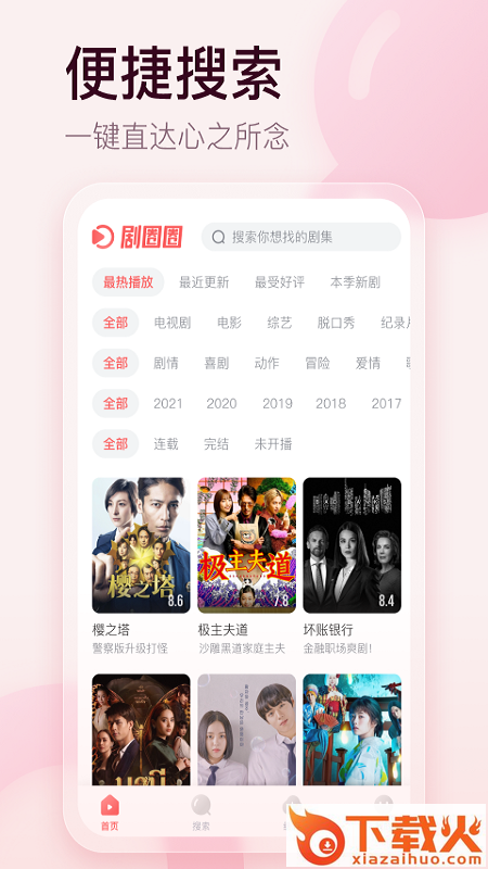 剧圈圈App,热门美剧日剧韩剧泰剧更新中;便捷搜索,一键直达心只所念;在线播放,即点即播,瞬时响应;离线缓存,行走的电影院。