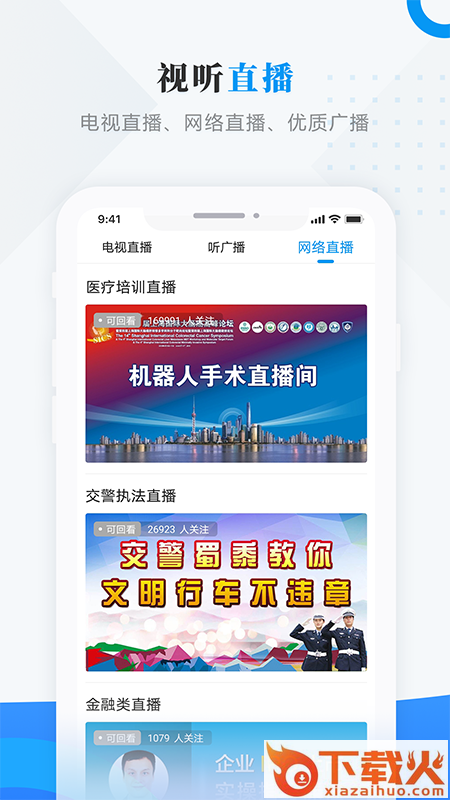 3、视听直播:电视直播、网络直播、优质广播