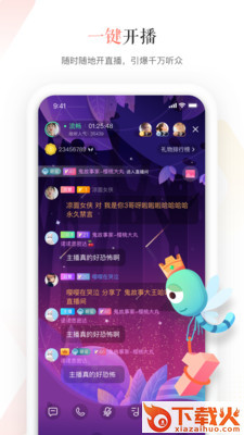 5.【一键开播】 随时随地开播,引爆千万听众,获取打赏收益。