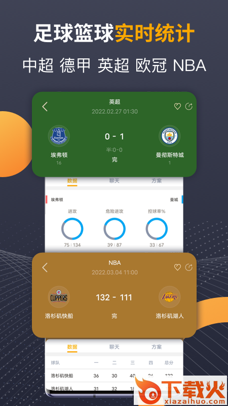 足球篮球实时统计,中超、德甲、英超、欧冠、NBA;