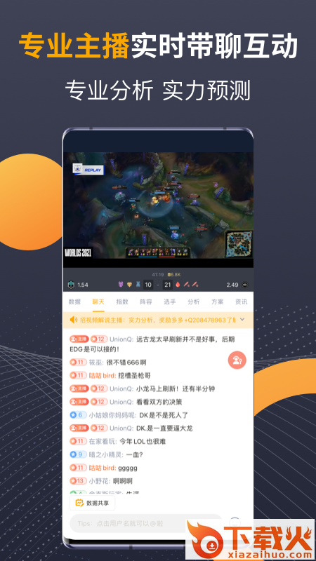 蜂鸟竞技APP(原蜂鸟电竞APP)拥有专业主播与玩家实时带聊互动,提供全球高清电竞足篮球体育直播,无延迟现场级电竞足篮球体育比分、即时对局数据、专家电竞足篮球体育方案分析推荐及比赛赛程资讯等。涵盖英雄联盟LOL、刀塔DOTA2、王者荣耀、CSGO、足球、篮球等多个电竞体育类别。