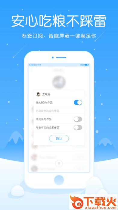 i.【订阅避雷】原作,CP,角色皆可自由订阅或屏蔽,角色的订阅和屏蔽更可以区分bg、bl和攻受向,同时还可以单独屏蔽作品,扫文不再担心踩雷啦!