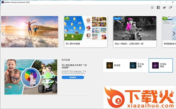 5、接下来在出现的页面中选择视频编辑器即可进入Premiere Elements2021,所有功能免费使用