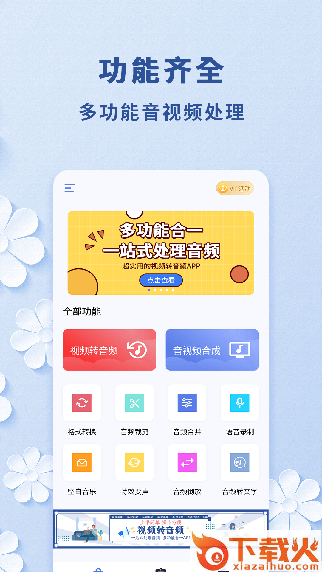 视频转音频助手app是一款实用的视频编辑工具。用户可以通过软件将视频进行格式转换,轻松将音频提取出来,非常的方便,软件操作简单,功能实用,还为用户提供了音频编辑处理工具,非常的实用。