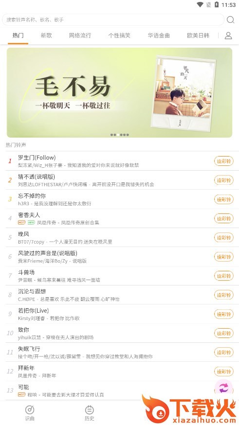 1、页面内点击下载歌曲识别APP,安装到手机