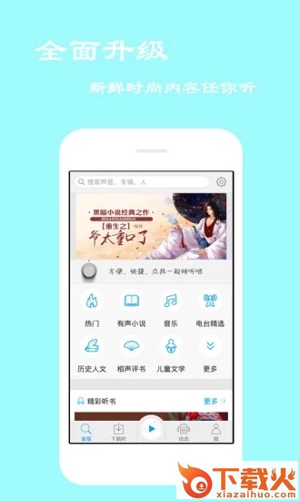 2、离线听书佣有单田芳郭德纲名家评书、《晓说》《冬吴相对论》娱乐综艺等十几个大类海量高清有声阅读资源,资源每天更新。
