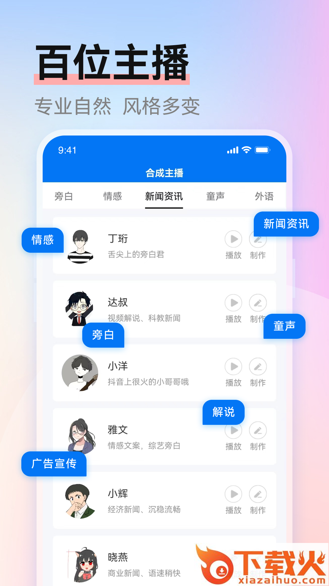 主播丰富:无论是全网热门的视频配音,还是独树一帜的情感配音,这款软件都将其囊括在内。