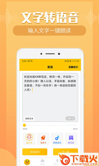 配音鸭app,手机文字转语音工具,免费配音,轻松合成语音,让广告配音更轻松。来配音鸭app,一键合成语音,多种音效任你挑选,使用简单,设置轻松,轻松获得满意配音。...