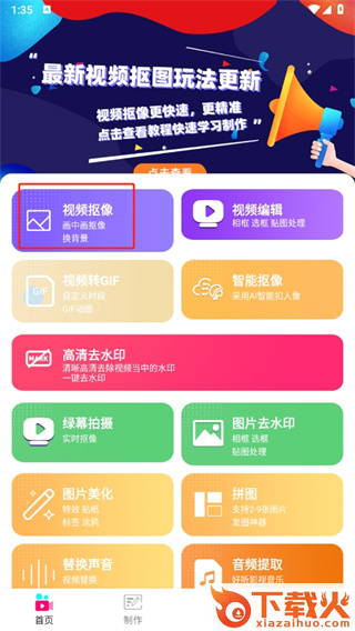 1、首先打开视频抠图软件,进入到首页中后点击【视频抠像】;