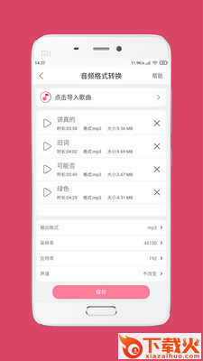 1、音频格式转换:支持MP3、AAC、AMR等主流格式音频之间的格式转换