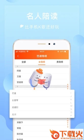 《为你诵读》是一款可以录音、听诵读的软件,全球唯一随身配乐诵读录音棚;配乐诵读,和手机K歌一样简单;全民参与,移动互联时代的声音控;名人陪读,让名人来诵读你的投稿。...