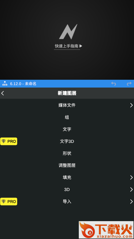 启动App后,点击红色“+”号创建图层并导入素材。除了视频,图像等媒体外,还可以添加形状,填充等图层。