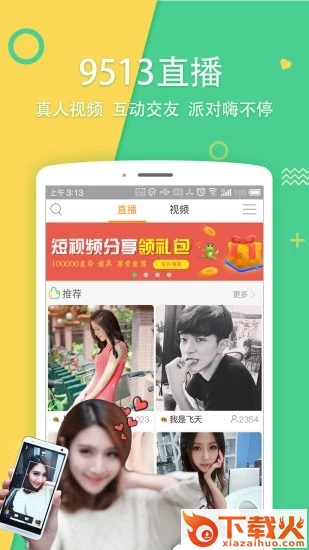 9513直播,1000万用户喜爱的真人视频聊天秀场。(支付宝、QQ空间应用合作App)