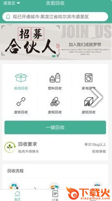 贪图回收员是贪图app的骑手端,骑手通过下载app注册登录,对用户下的订单进行接单,上门收取废品。