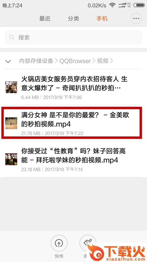 8、开始缓存完成后,打开手机文件管理。找到QQ浏览器打开,找到QQ浏览器里的视频。