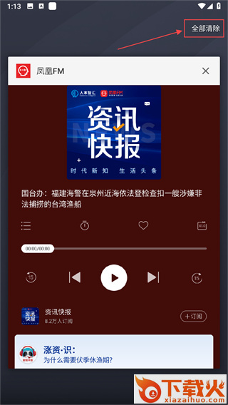 调出正在运行的凤凰FM后台,点击清除,即可关闭