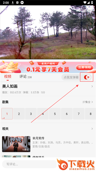3、点击播放界面当中弹幕功能后方的【开关】即可完成关闭操作