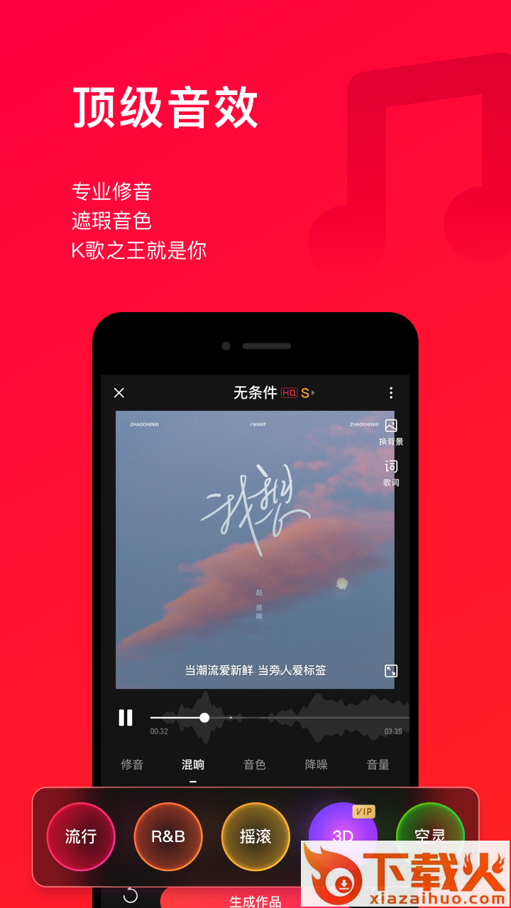 - 优质的音效,强大的“一键修音”功能,让你的歌声更动听