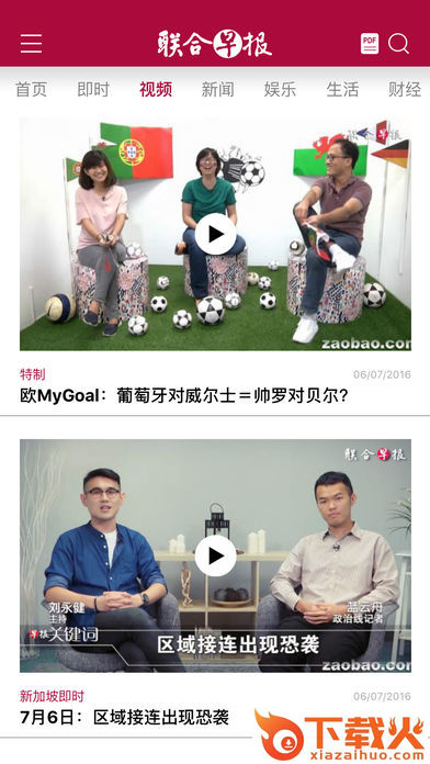 通过手机app浏览当日(新加坡时间凌晨6点30分)发布的PDF格式(电子报)《联合早报》印刷版内容;