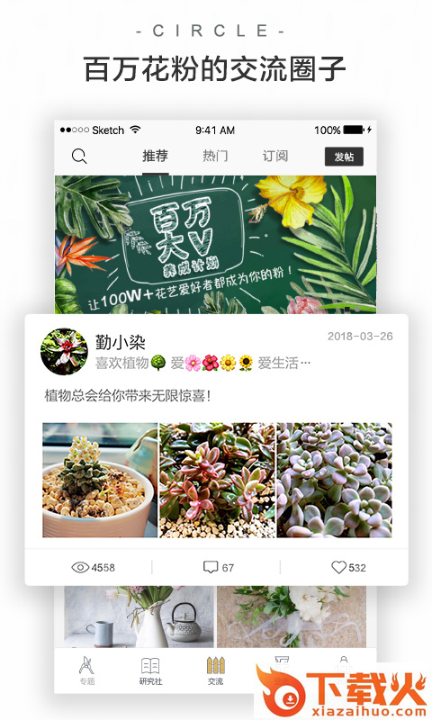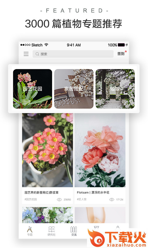 全球达人跨界,每日精选推荐,聚合原创图文视频内容,随时随地获取植物美学信息。专题涵盖花艺、园艺、家居超过3000篇精品专题。