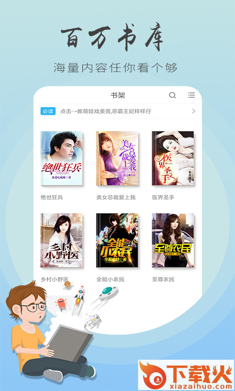 【百万书库 免费收录】百万小说随便看:玄幻奇幻、都市言情、武侠仙侠、青春校园、穿越架空、惊悚悬疑、历史军事、漫画和经典图书。