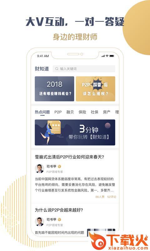 1.问资深专家:可向资深理财专家1v1提问,司书甲、胡乃军、严历、庞晓庆、黄亚飞、吉青科莫等“财知道”认证大v实时解惑,提出的问题会给予快速答复。