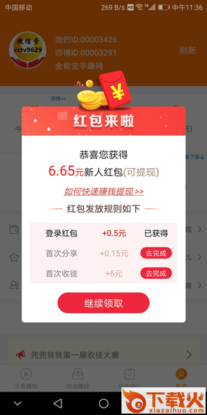 急转旗下,收益及提现稳定,文章点击单价0.15元,注册得6.65元红包(其中0.5元登陆即得)