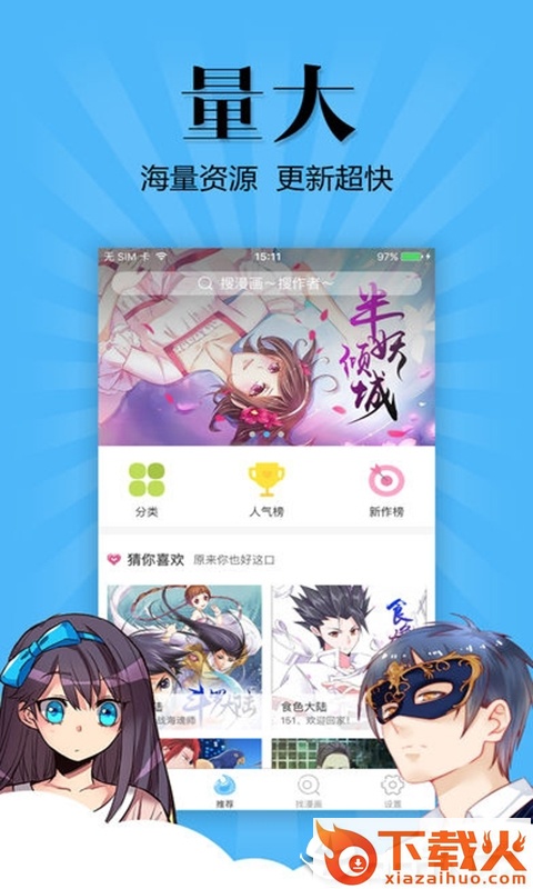 1、首页推荐精选好看漫画,猜你喜欢看看有没有喜欢的内容,随时看漫画相当不错哟;