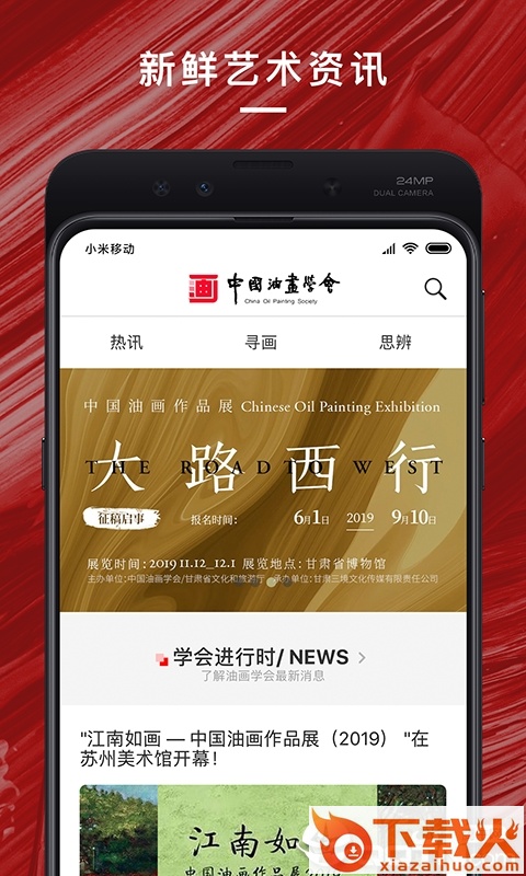 1.热讯及思辨,学会进行时版块为您提供最新的中国油画学会以及地方学会的新闻动态,学习最新的油画理论知识,同时展示相关学术展览,艺术家展览;