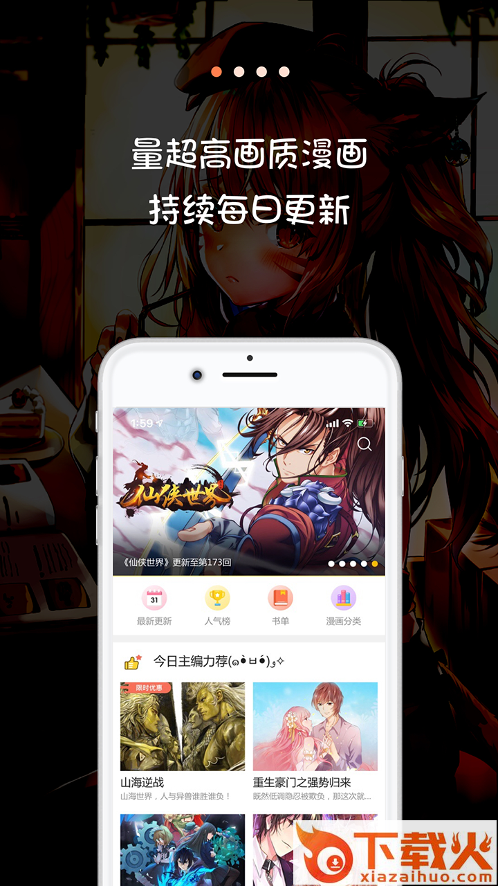 绿色免费软件《每日看漫画安卓版》最新版v1.0最新版采用中文展示,适用于Android,软件大小12.3M,下载火软件网提供免费下载安装!