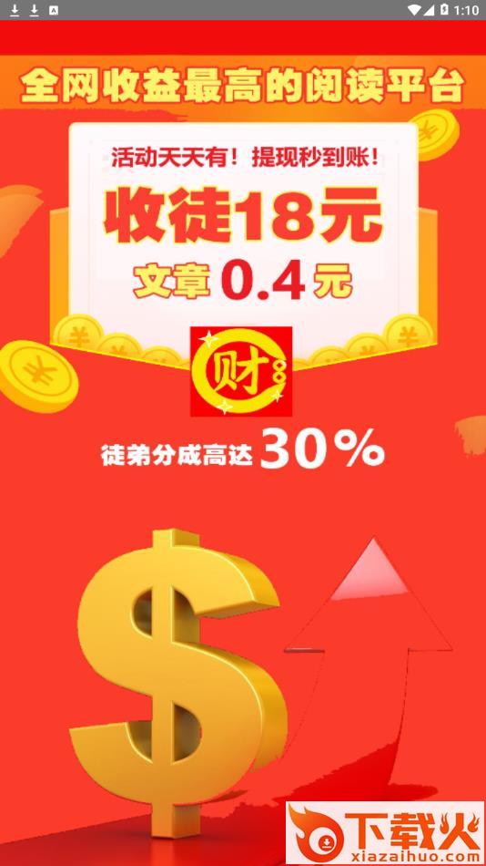 财宝app下载,为更多小伙伴们通过轻松便捷的网赚服务,通过财宝app转发文章分享阅读就可以轻松赚钱,单篇阅读0.4元奖励,更有邀新收徒分红,感兴趣就来下载。