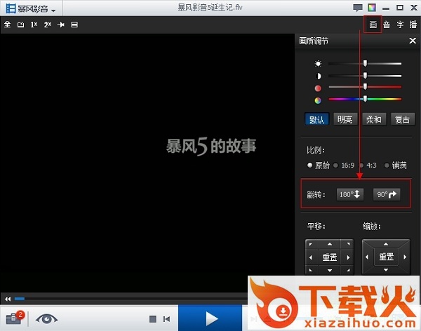 您可以点击播放区上方浮动控制栏右侧的“画”字进行画面旋转。