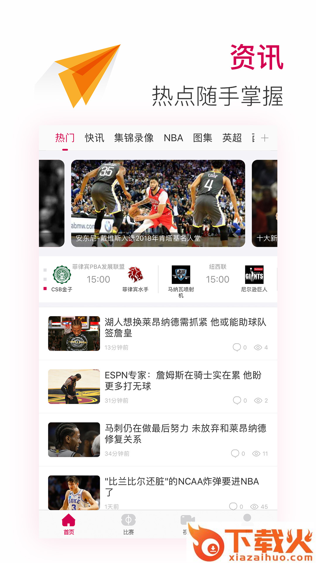 专业提供比赛新闻资讯、比分数据、集锦录像的APP.