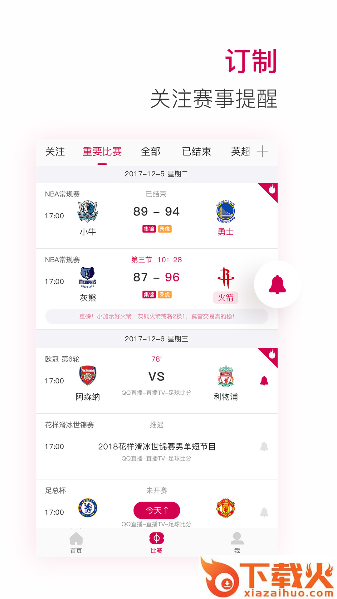 【专属头条】赛事一键关注提醒,定制您的体育头条,专属呈现不错过。