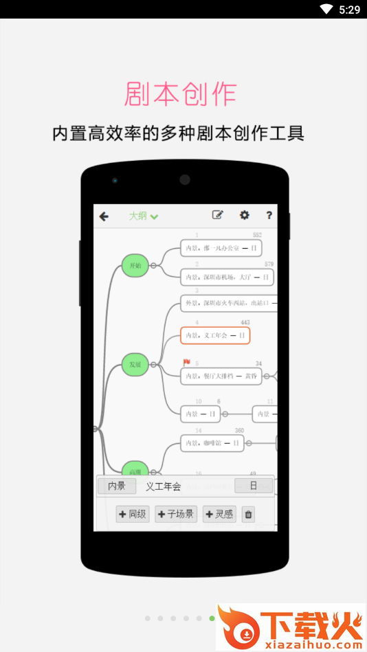 2、创作:可视化的大纲设计,可视化的角色设计,简洁的中文剧本写作语言,优美的实时预览的工业化剧本作品,基于云存储的写作体验。