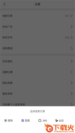 3、接着来到设置的页面中需要点击的是【搜索引擎】;
