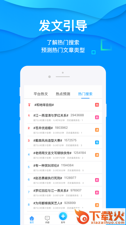 发文引导:平台热文,热点预测,营销日历等。帮助用户发文