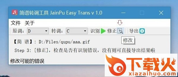 打开另外一张简谱,重复以上步骤1-3,然后点击“修正”按钮。