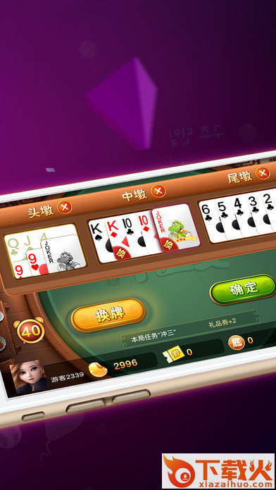 -最丰富的玩法,包括2-4人的经典通比玩法,双王当赖子换牌3张的王牌十三水;