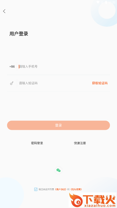 5、回到登录界面,输入手机号、验证码,勾选隐私协议,点击登录