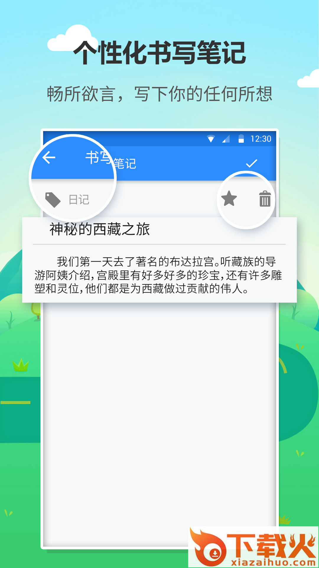 打破常规的记日记页面,给你一个萌萌哒的书写天地。