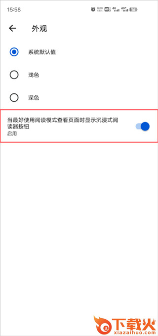 4、最后点击过后我们点击开启【显示沉浸式阅读器】后面的按钮就可;