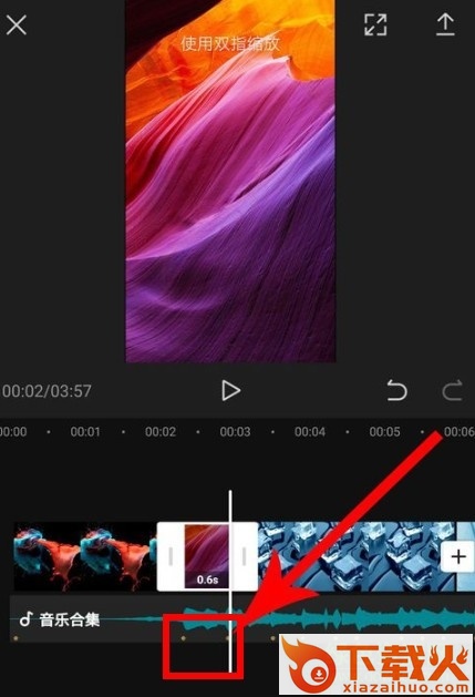 2、而在进入编辑界面之后,我们就可以找到底端的“音频”功能,并且从下方列表里选择“音乐”按钮,找到在线卡点的曲库。