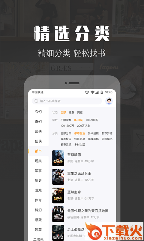 热门分类全覆盖:都市、玄幻、言情、穿越,你想看的全都有