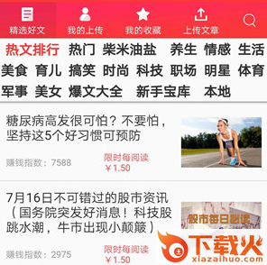 2、登录成功后,点击“转发赚钱”或“小视频”选择感兴趣的文章/视频转发到微信,被阅读即可获得相对应的现金收益。