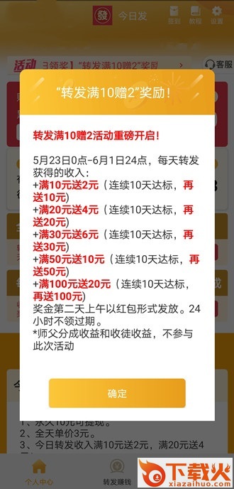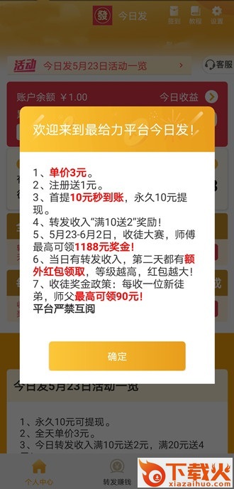 今日发app是抢先收旗下的最新赚钱软件,这个转客最给力的平台,刚上线就有着诱人的福利,满十赠二,每天转发满十条,算作十二条,现在下载安装今日发app有着你想象不到的现金礼包呢。...