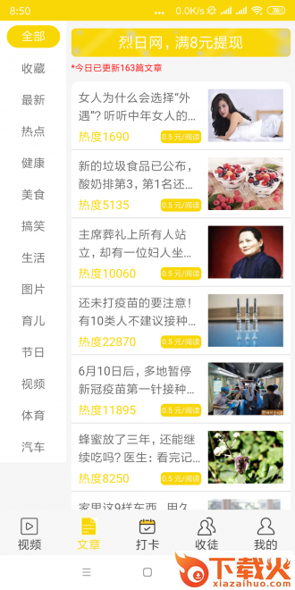 烈日网APP是四季联盟旗下发布的全新转发文章赚钱平台!在平台上为大家准备了各种热门的资讯和视频内容,任意选择你感兴趣的内容然后转发分享出去,有人点击阅读那么你就能获得现金奖励,奖励永久满8元可提现,感兴趣的朋友可以准时来下载烈日网APP试试!