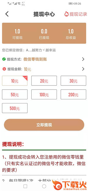 1、在马鹿网上赚取的奖励满10元可提现,申请提现会在24小时内快速到账