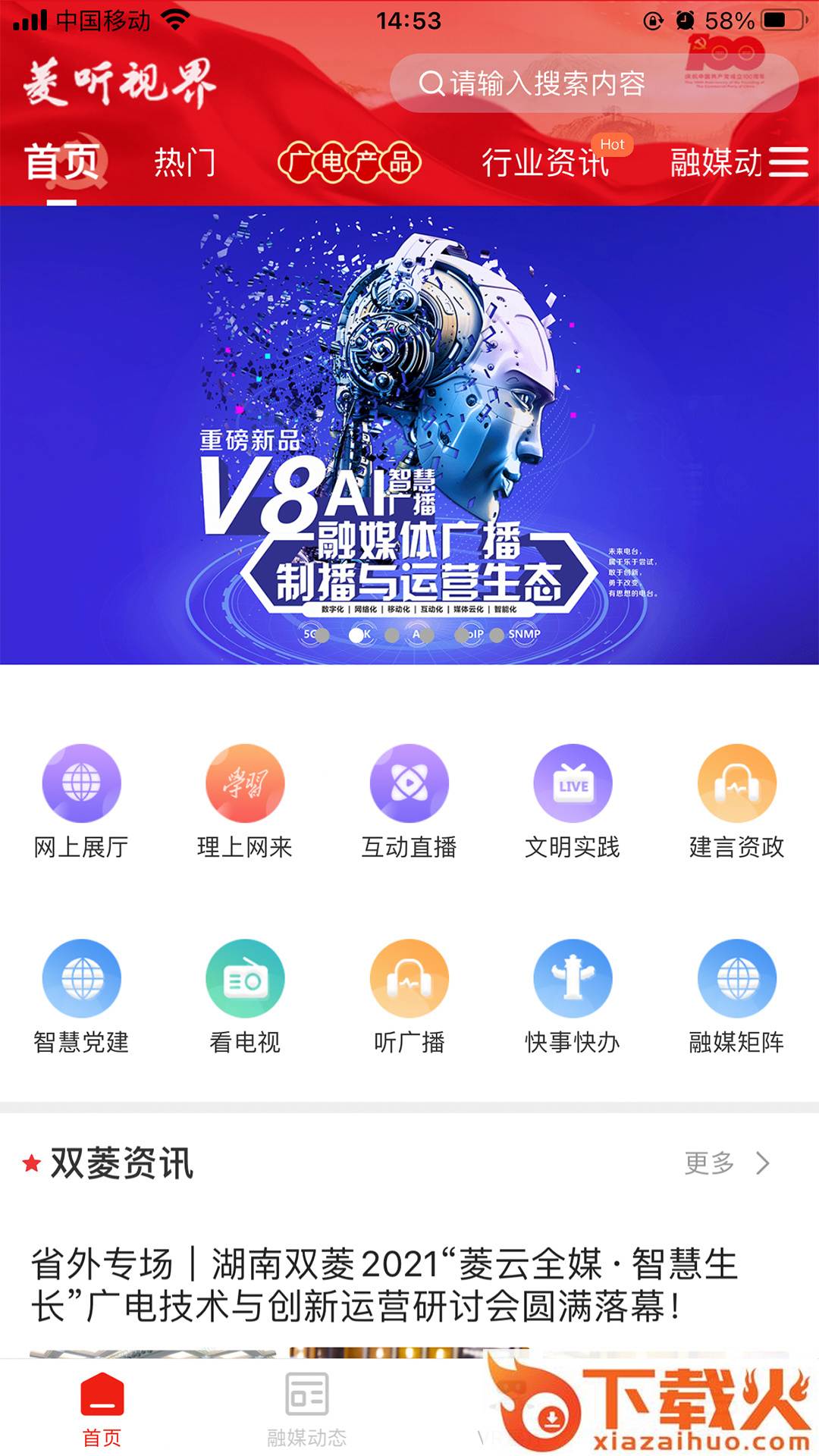菱听视界是湖南双菱电子科技有限公司重点打造的以资讯、智慧生活、便民服务为一体的,具有广电特色的无线应用客户端演示平台。