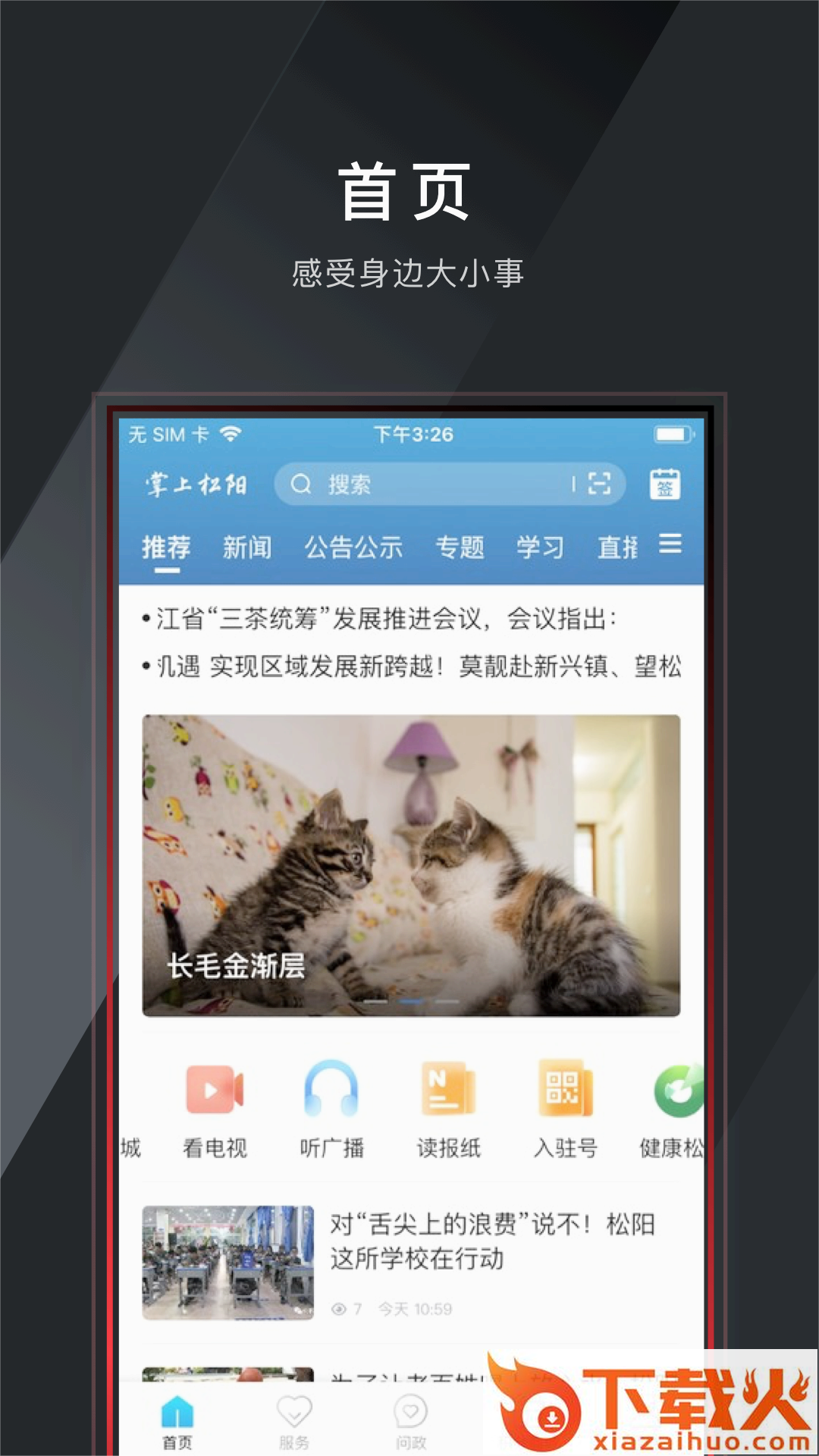 掌上松阳官方app,松阳本地新闻资讯抢先看,关注本地最新动态,获取有价值的内容,享受便捷的掌上办事服务。看电视、听广播、读报纸,丰富内容应有尽有,满足居民生活娱乐所需。...